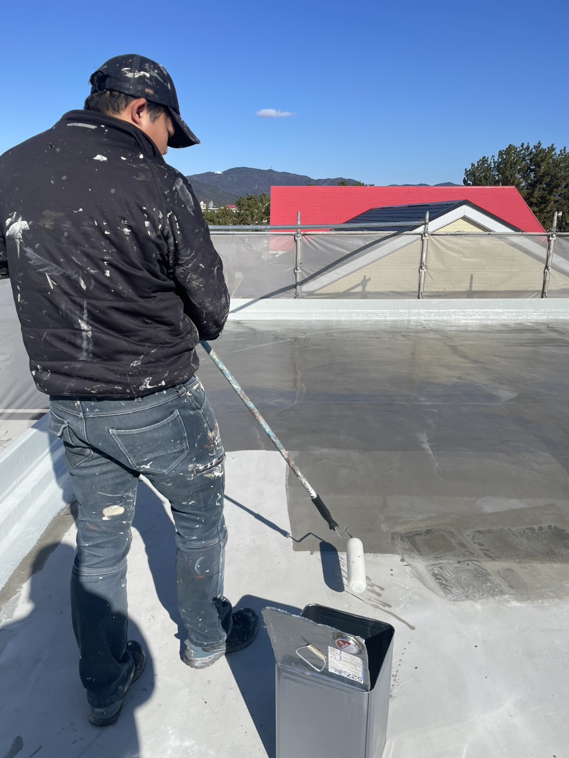 **屋上防水工事の下塗り作業(プライマー塗布)**を行いました🏠💪